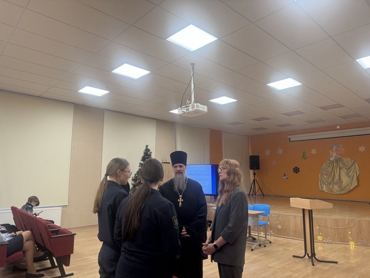 В школе-интернате «Кадетский корпус» 07 ноября 2025г. Настоятелем храма Матроны Московской г. Химки, Химкинского благочиния, протоиереем Андреем Гаховым, по согласованию с директором школы Сусловой Людмилой Серафимовной, с учащимися 8-10 классов была проведена встреча- беседа на тему: «празднование Казанской иконы Пресвятой Богородицы и День Народного Единства».